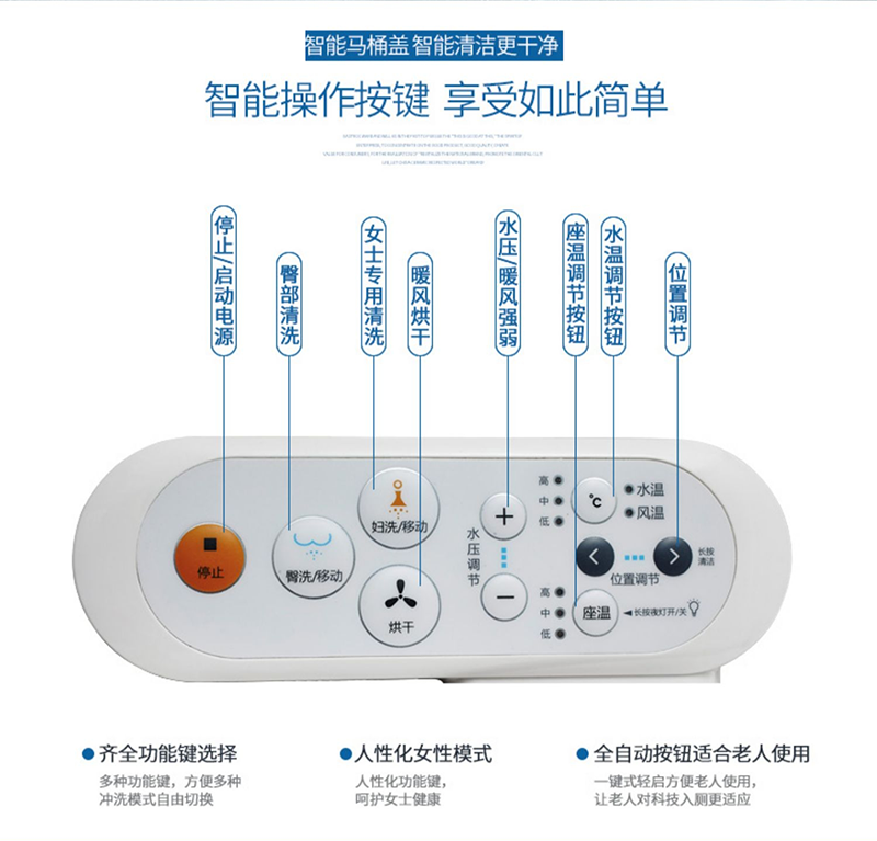 6、 女性洗凈:專(zhuān)為女性日常衛(wèi)生而設(shè)計(jì),由女性專(zhuān)用噴嘴噴出溫水,精心清洗,防止細(xì)菌感染;