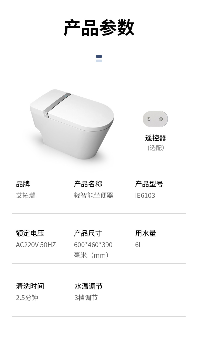 產(chǎn)品型號:iE6103 智能馬桶